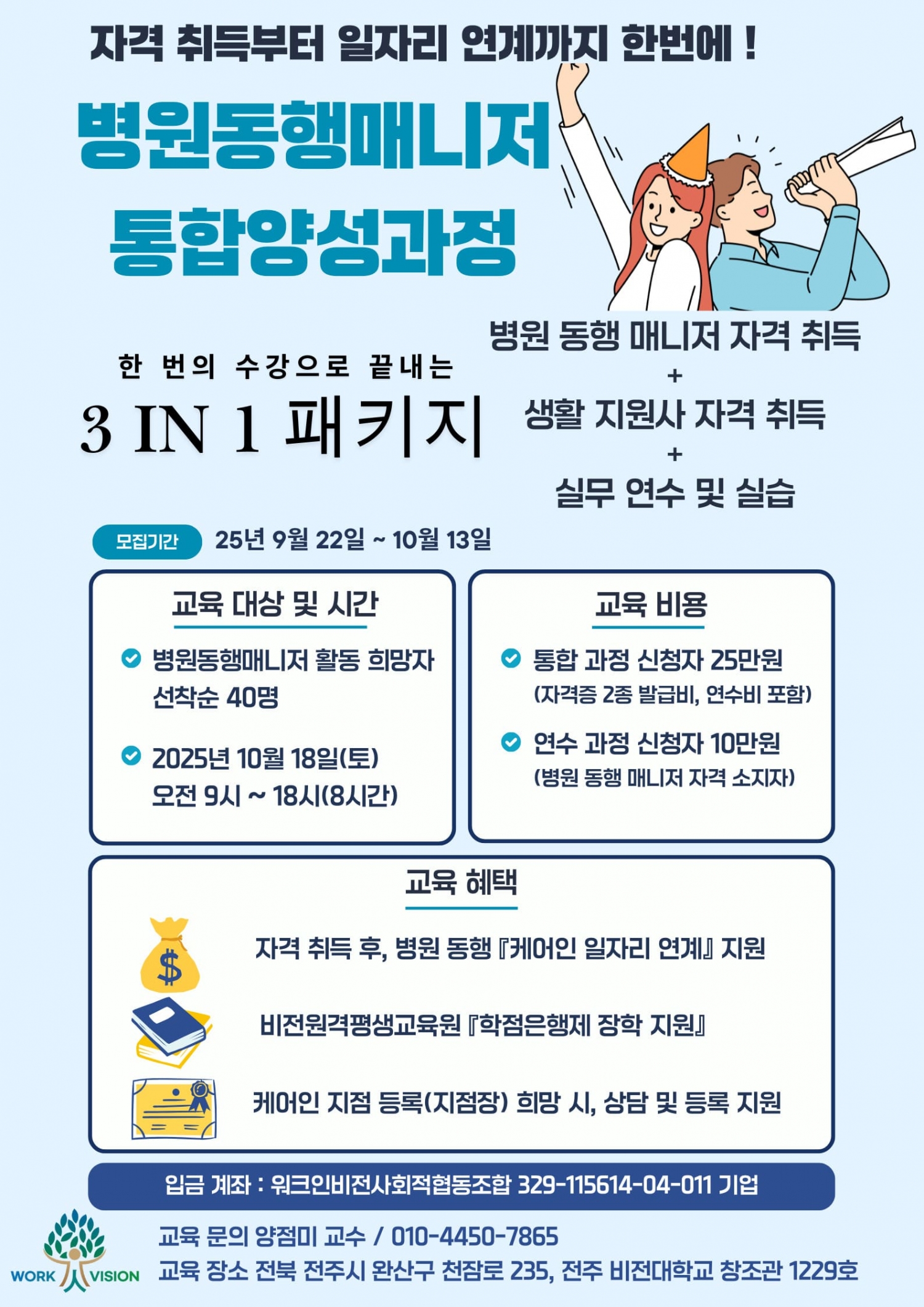 자격 취득부터 일자리 연계까지 한번에 이루는 병원동행매니저 통합양성과정 비전트리2025-09-29조회 75 기간 : 2025-10-18 ~ 2025-10-18 요일 : 토요일 목록보기