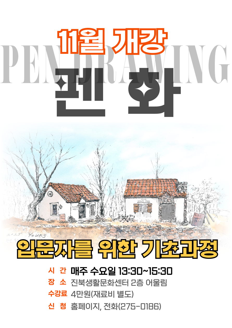 11월 개강하는 펜화(펜드로잉) 기초과정반 수강생 모집합니다.