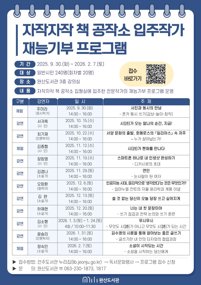 완산도서관 '자작자작 책 공작소' 입주작가 재능기부 프로그램(김종협 시인)