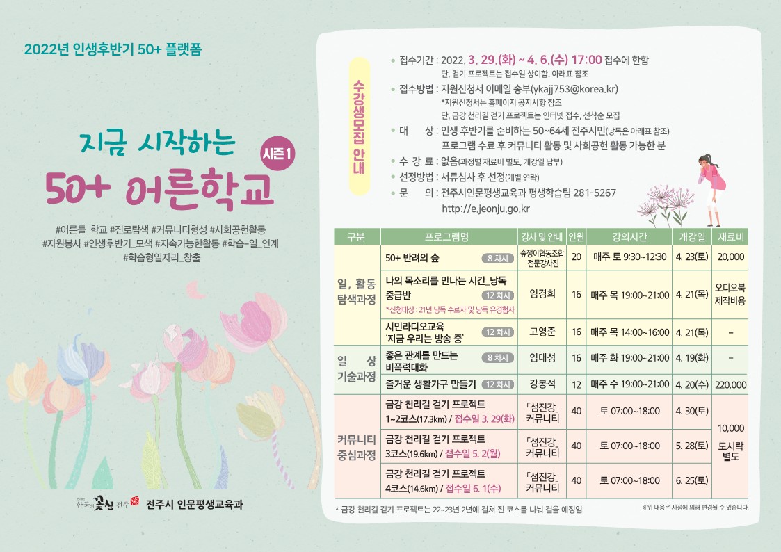 대 상 : 인생후반기를 준비하는 50~64세 전주시민(낭독은 아래표 참조)