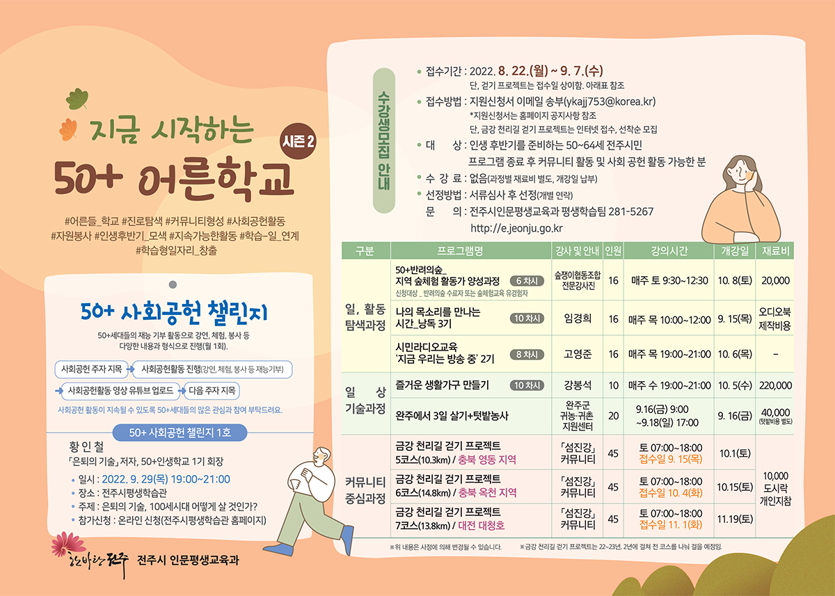 50+ 어른학교 시즌2 (일부 과정) 입학생 추가모집 안내(9. 30(금)까지)