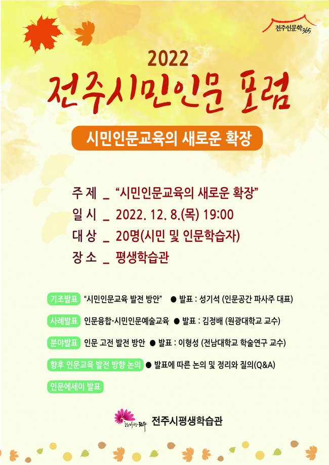전주시민인문포럼 진행기간 : 22.12.08 ~ 22.12.08