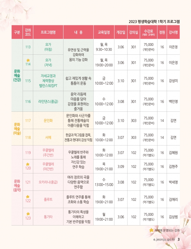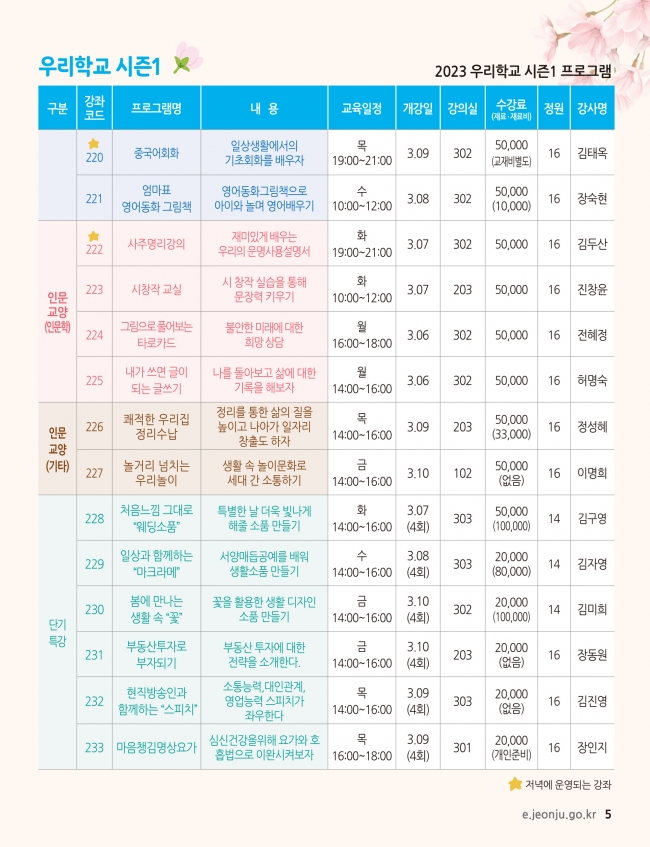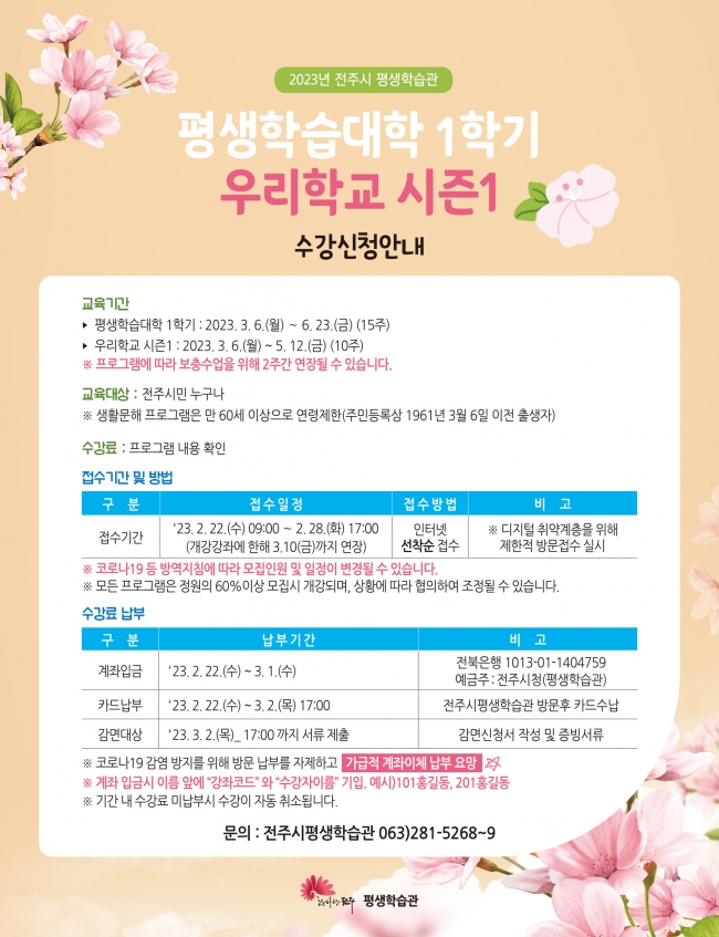 2023년 평생학습대학 및 우리학교 1학기 모집안내