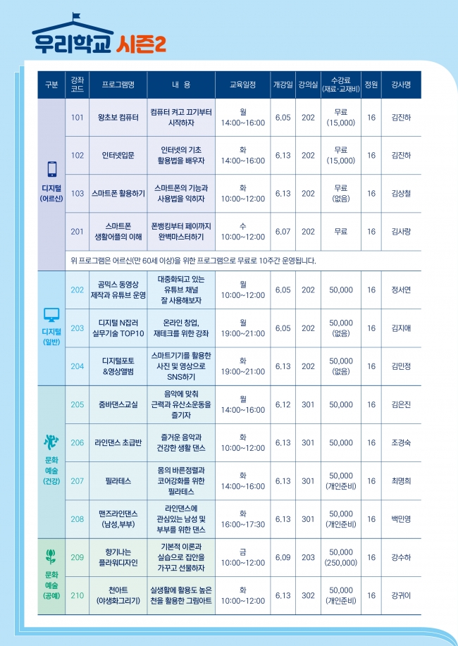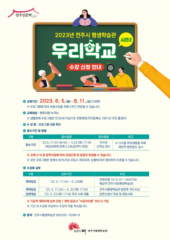 2023년 평생학습관 우리학교 시즌2 수강생 모집