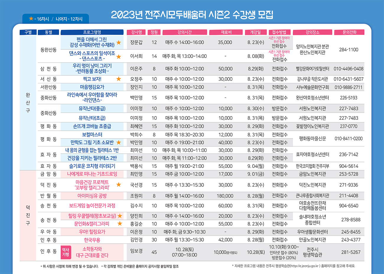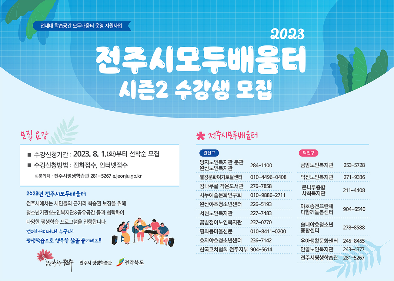 2023년 전주시 모두배움터 시즌2 수강생 모집을 8. 1(화)부터 선착순 모집합니다.