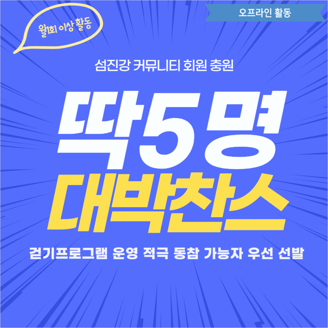 섬진강커뮤니티 인원충원(5명) 마감되었습니다.