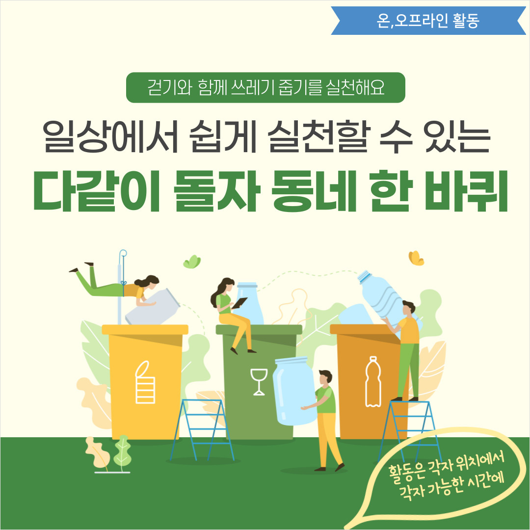각자의 지역에서 주1회 편안한 시간에 걸으며, 쓰레기 줍기