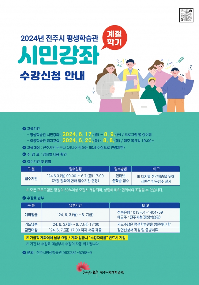 2024년 평생학습관 시민강좌 계절학기 수강생을 모집합니다.