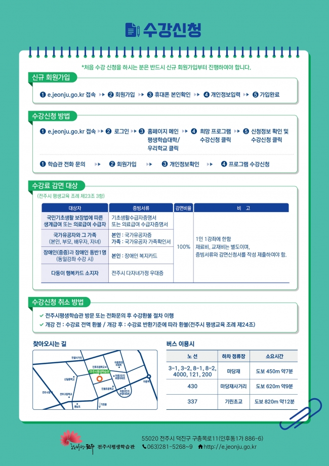 더불어 한옥마을 입구에 있어 교통이 편리한 jb문화공간에서 진행되는 강좌도 함께 열립니다.