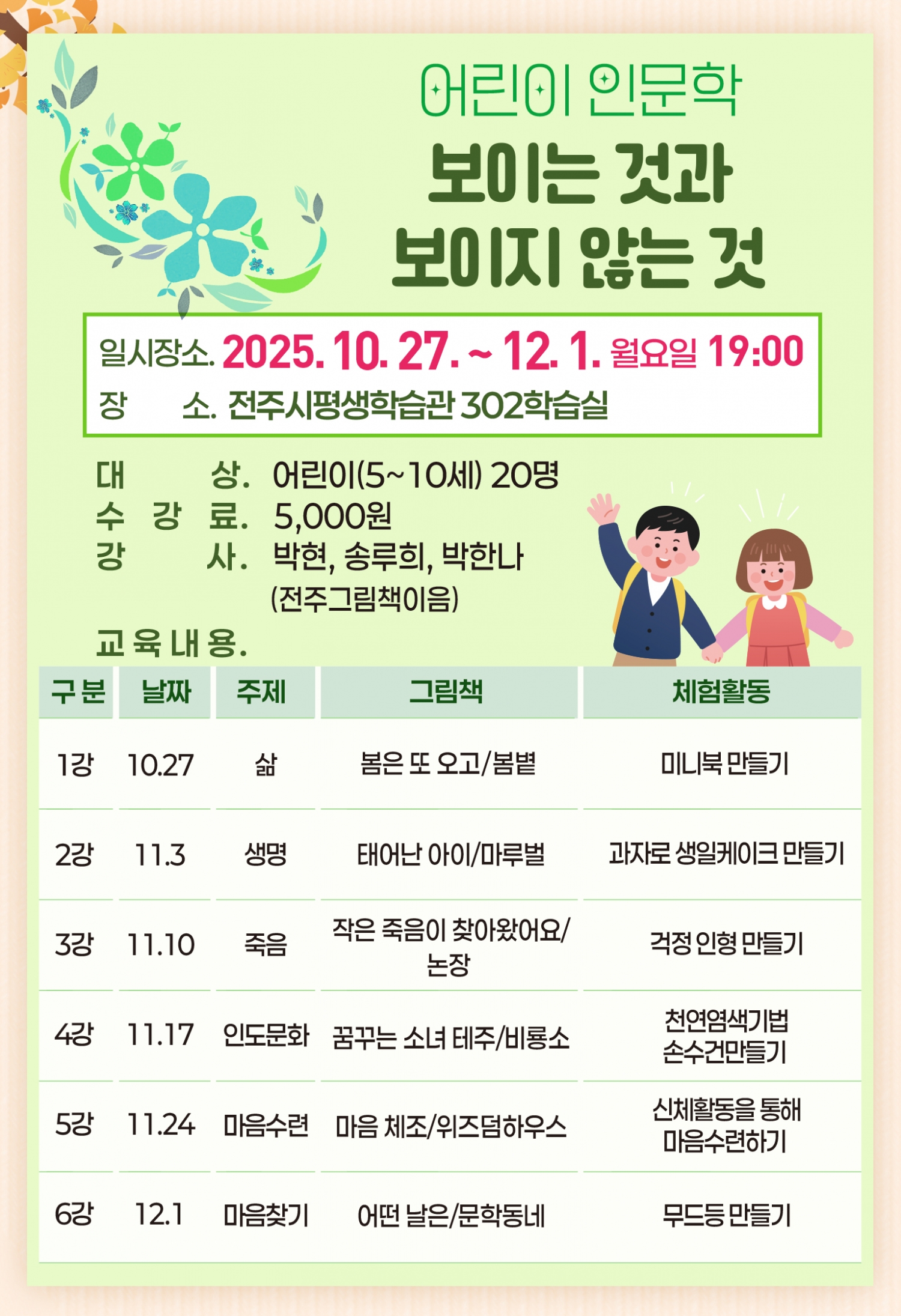 어린이 인문학 진행기간 : 25.10.27 ~ 25.12.01