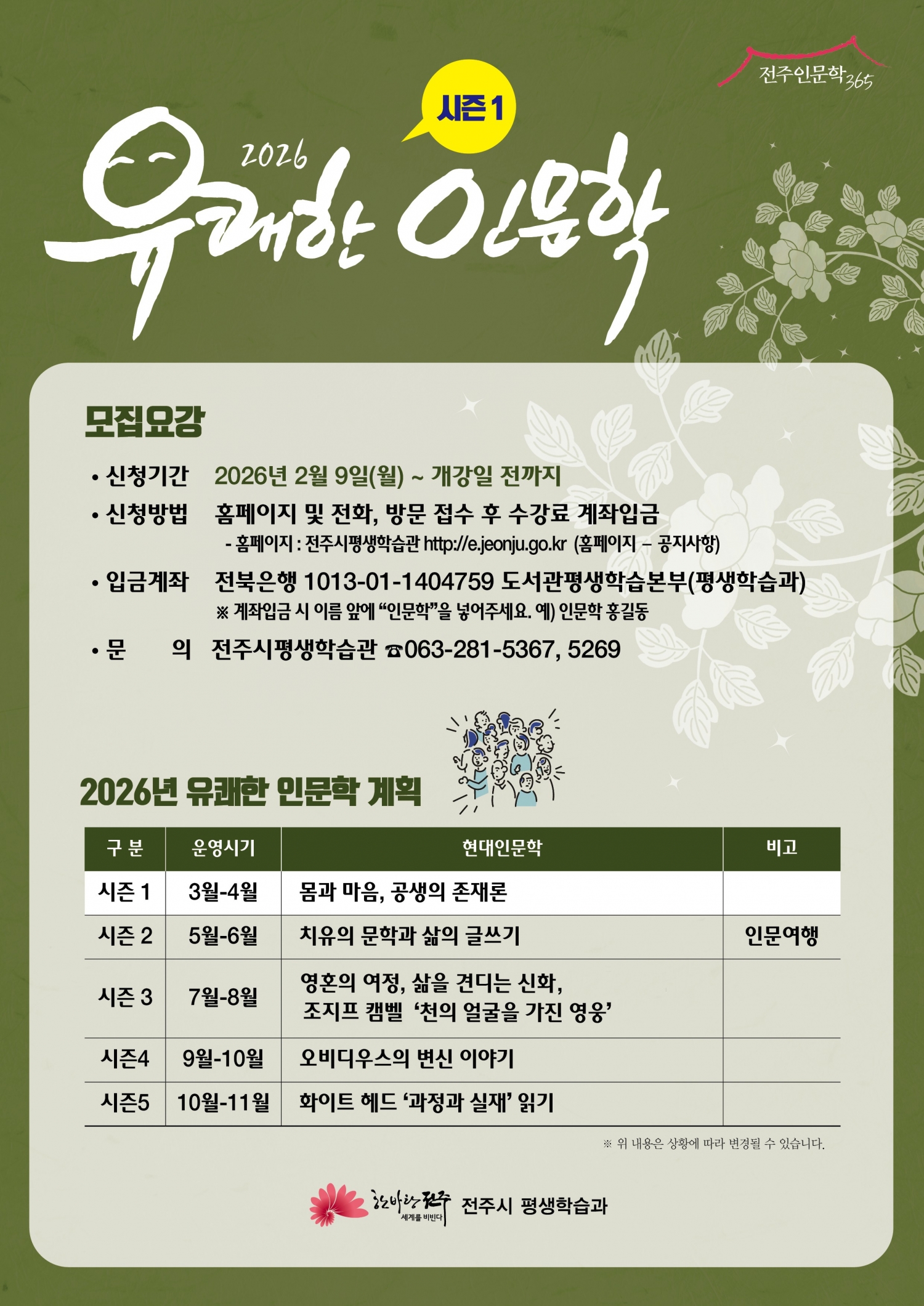 2026 유쾌한 인문학 몸과 마음, 공생의 존재론 진행기간 : 26.03.10 ~ 26.04.14